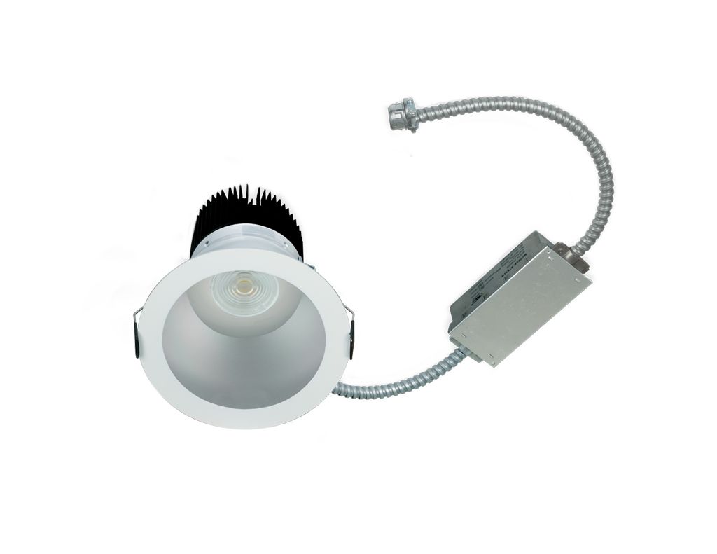 Architectural/Commercial-grade recessed (COB) Chip on Board Beam Control LED allows for concentrated high center beam candlepower. Twist and lock TIR beam control optic is designed for easy field replacement of 25°, 30°, 50°, 60°, and 70° beam spread options.