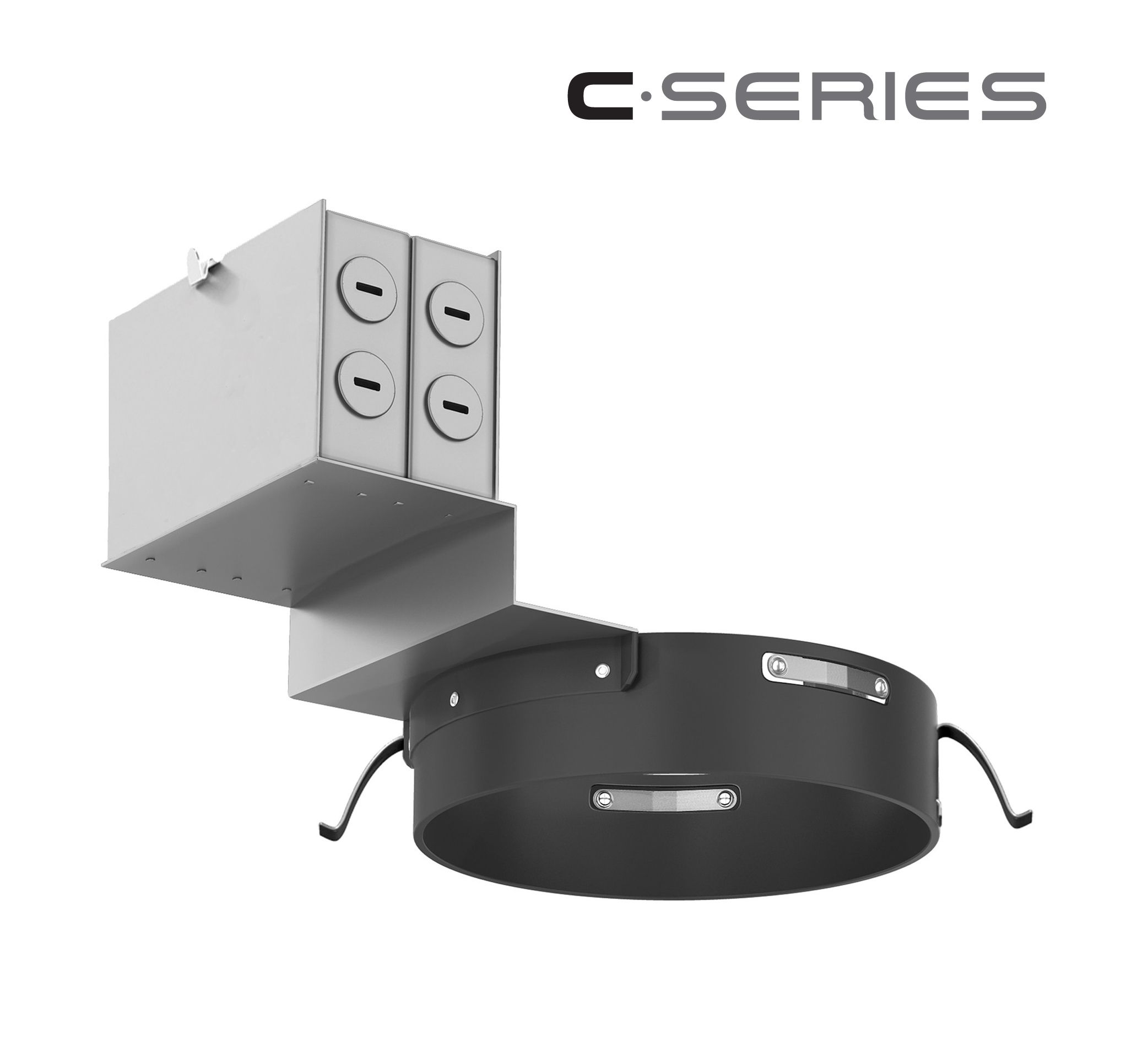 Heavy duty remodel housing frame, for existing ceiling installations that do not have existing fixtures. Can be used in locations with existing holes or for locations that new holes are needed.