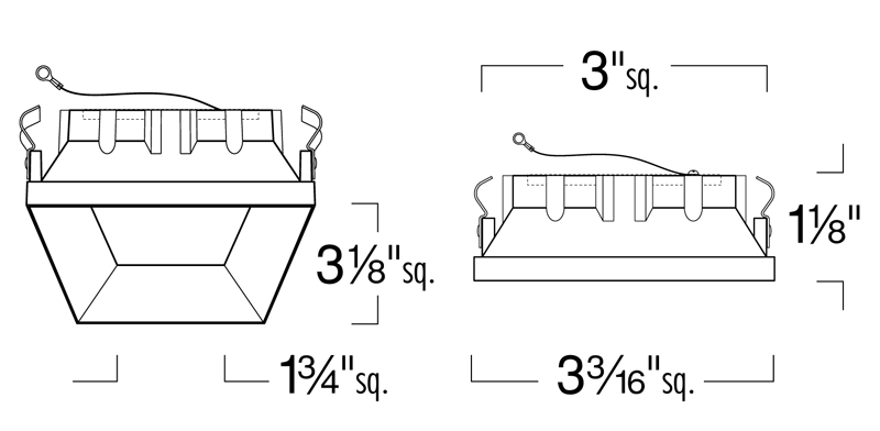 LRXQ302 : 3" LED/MR16 Square Trimless Lensed Reflector